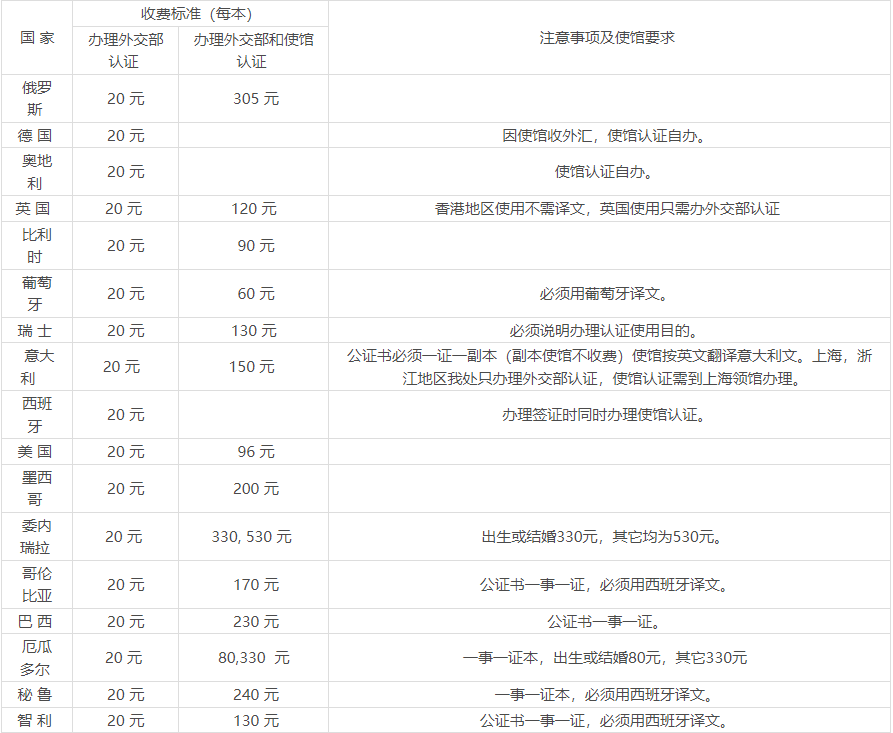 關(guān)于發(fā)往國外使用的公證書認(rèn)證收費問題的通知