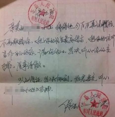 “親愛的劉英,我保證以后不再惹你生氣,我應(yīng)該好好的對待你,我非常愛你,心心相印,永不變心,??菔癄€?!?br />       這份保證書,寫于一張紅色格子的稿紙上,落款處蓋有“豐縣人民法院順河法庭”的公章。