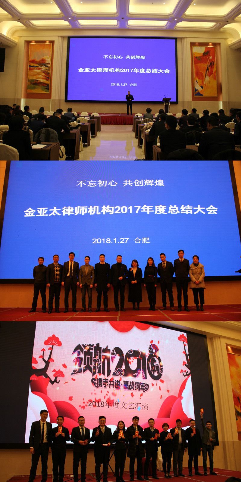 金亞太官網(wǎng)訊:2018年1月27日,金亞太律師機(jī)構(gòu)“不忘初心,共創(chuàng)輝煌”主題年會(huì)暨文藝匯演在合肥白金漢爵大酒店隆重舉行。此次盛會(huì)由兩部分組成,我所合伙人、律師、行政人員共計(jì)100多人參加,度過(guò)了一個(gè)歡樂(lè)難忘的夜晚。