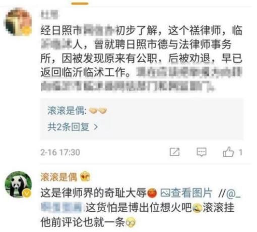 這人是誰(shuí)?他的微博認(rèn)證為“山東日照德與法律師事務(wù)所律師”,還曾曬出自己的法律職業(yè)資格證書,顯示其真實(shí)姓名為禚寶偉。